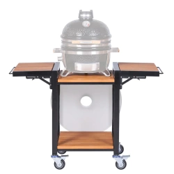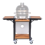 Wyjątkowo solidny wózek / stolik do grilla ceramicznego Icon / Junior. Podstawa wykonana ze stali malowanej proszkowo. Stoliki i półki z wytrzymałego drewna akacjowego. Wytrzymałe kółka z pełnej gumy. Optymalna wysokość robocza. Wymiary: 79 x 121 x 52 cm