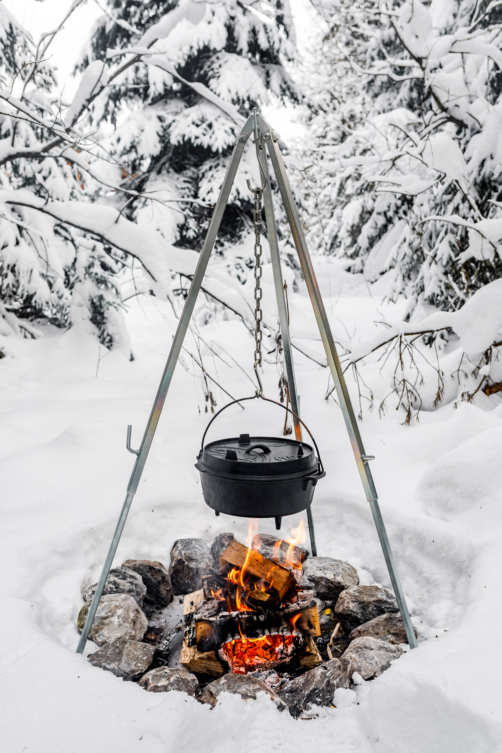 Kociołki myśliwskie na nóżkach z żeliwa Petromax często nazywane kociołkami węgierskimi są idealne do gotowania w ognisku. W razie potrzeby pokrywka kociołka może być również używana jako półmisek lub patelnia.
