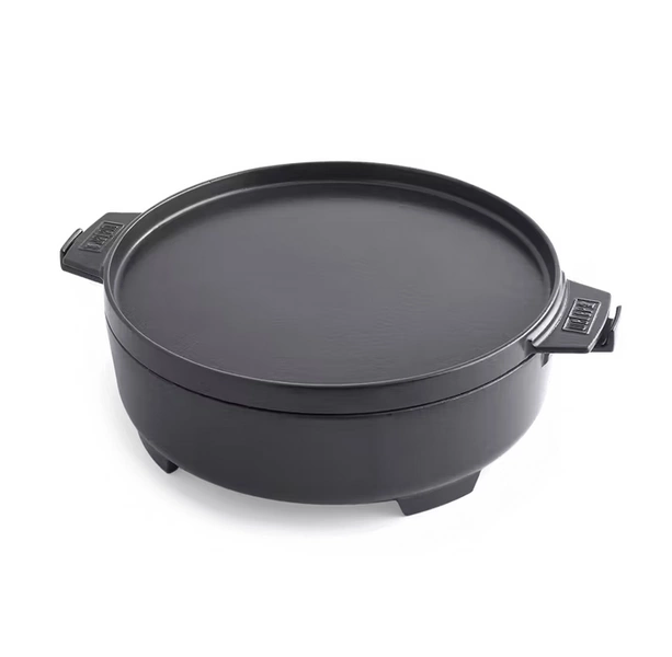 To wielofunkcyjne naczynie zapewnia nieskończone możliwości podczas grillowania. Żeliwny kociołek holenderski o pojemności 6,8 litra zapewnia równe rozprowadzanie i utrzymywanie ciepła podczas przygotowywania delikatnych pieczeni, smakowitych zup lub gulaszy. Pokrywa o podwójnej funkcji może służyć jako blacha do opiekania kanapek lub perfekcyjnego pieczenia piersi z kurczaka i warzyw. Porcelanowa emalia zapewnia łatwe czyszczenie, a obie części mogą być ułożone jedna na drugiej, dzięki czemu oszczędzają miejsce podczas przechowywania.