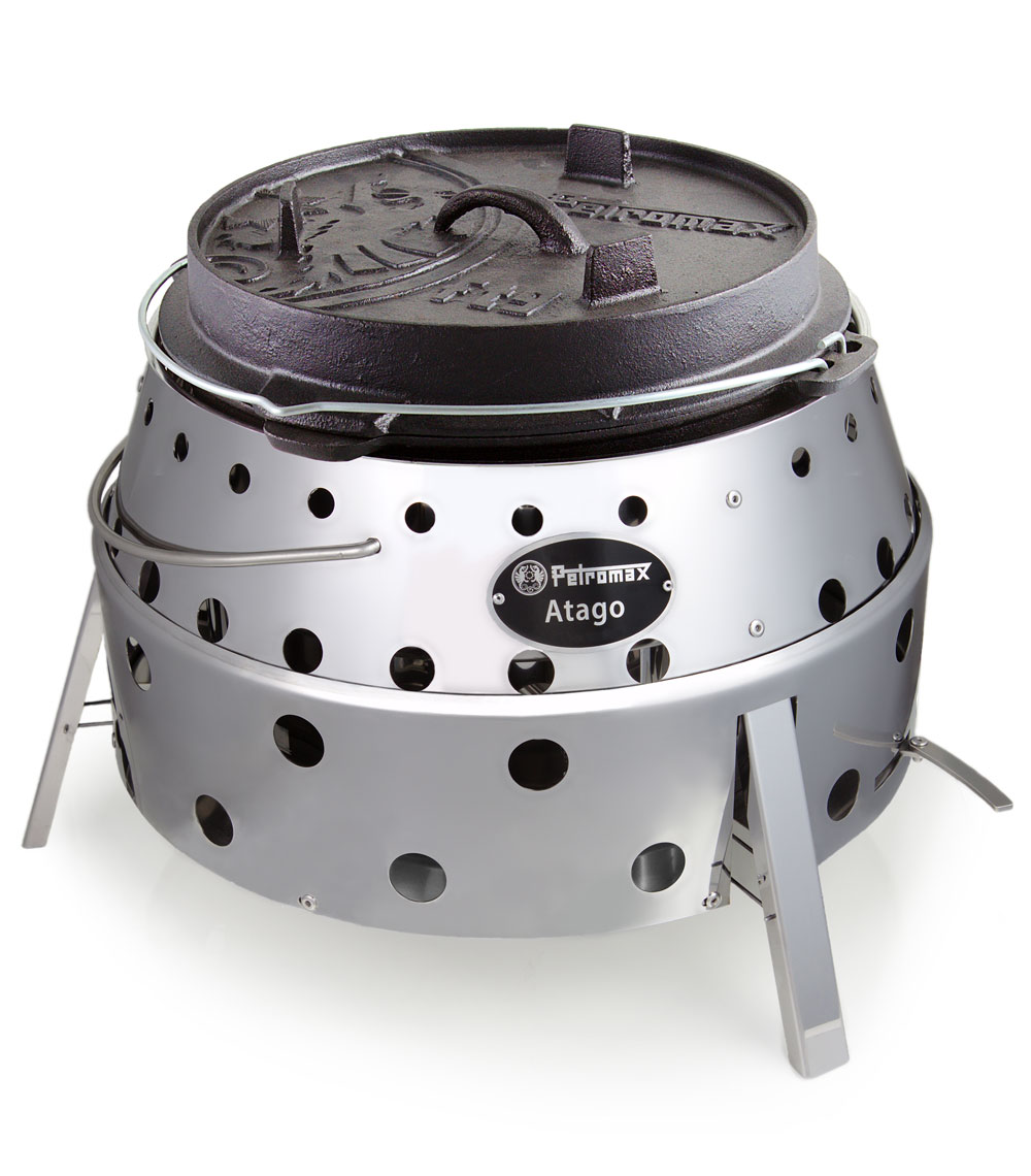 W połączeniu z naczyniami żeliwnymi Petromax i misą ogniową, Atago staje się najwyższej klasy piekarnikiem i kuchenką. Aby to zrobić, żeliwny kociołek (np. Petromax ft1, ft3, ft4,5, ft6 lub ft9) jest po prostu umieszczany na żarzących się brykietach w Petromax Atago. W przypadku dań na patelni grill i miskę paleniskową Petromax bez nóżek (fs48 lub fs56) można umieścić na okrągłym otworze Atago. Ponieważ miska lub żeliwny kociołek jest otoczony przez Atago, zapewniona jest optymalna wydajność cieplna. Aby używać produktu jako klasycznego grilla wystarczy położyć ruszt grillowy znajdujący się w zestawie. Jeśli Atago jest używany bez grilla, można wykorzystać ekspres do kawy lub czajnik do przygotowania gorącego napoju lub rozpalić przytulne ognisko na wieczór.