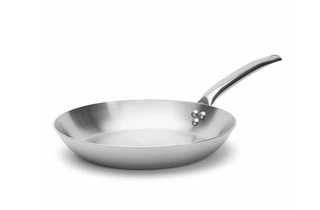 Patelnia ALCHIMY marki deBuyer wykonana jest z najwyższej jakości stali nierdzewnej i aluminium. Monoblokowy korpus gwarantuje równomierne rozprowadzanie temperatury oraz bardzo precyzyjną kontrolę procesu gotowania. Średnica: 28 cm. Grubość: 2.7 mm.